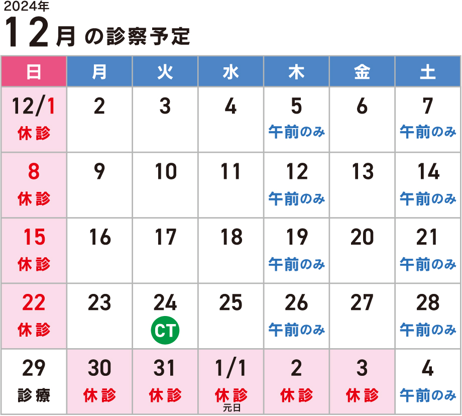 | 9:00〜12:30 | ○ | ○ | ○ | ○ | ○ | ○ |
